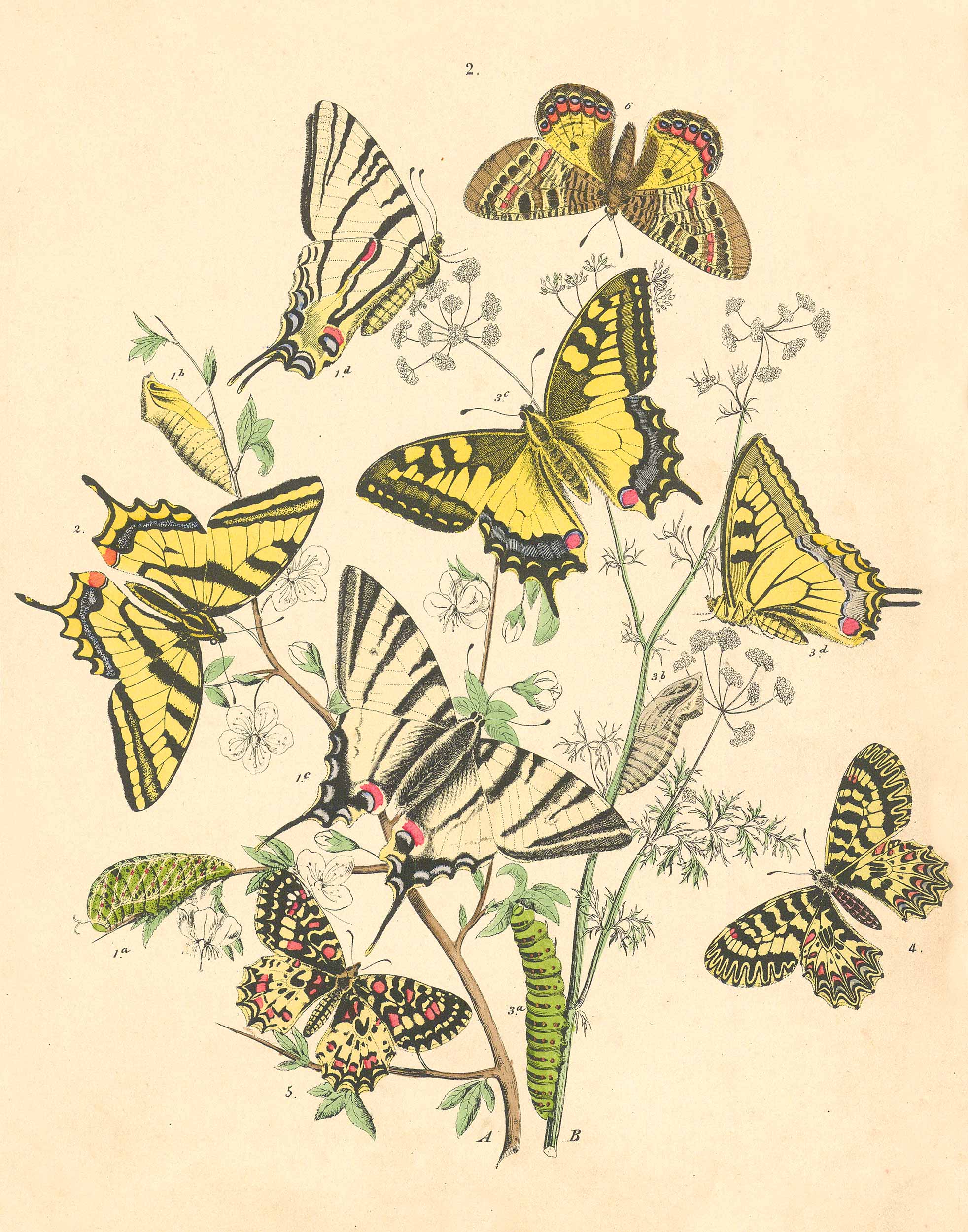 Reproduction of William Forsell Kirby’s illustration from his book, “British and European Butterflies and Moths” from 1882. Kirby was an English entomologist and folklorist.