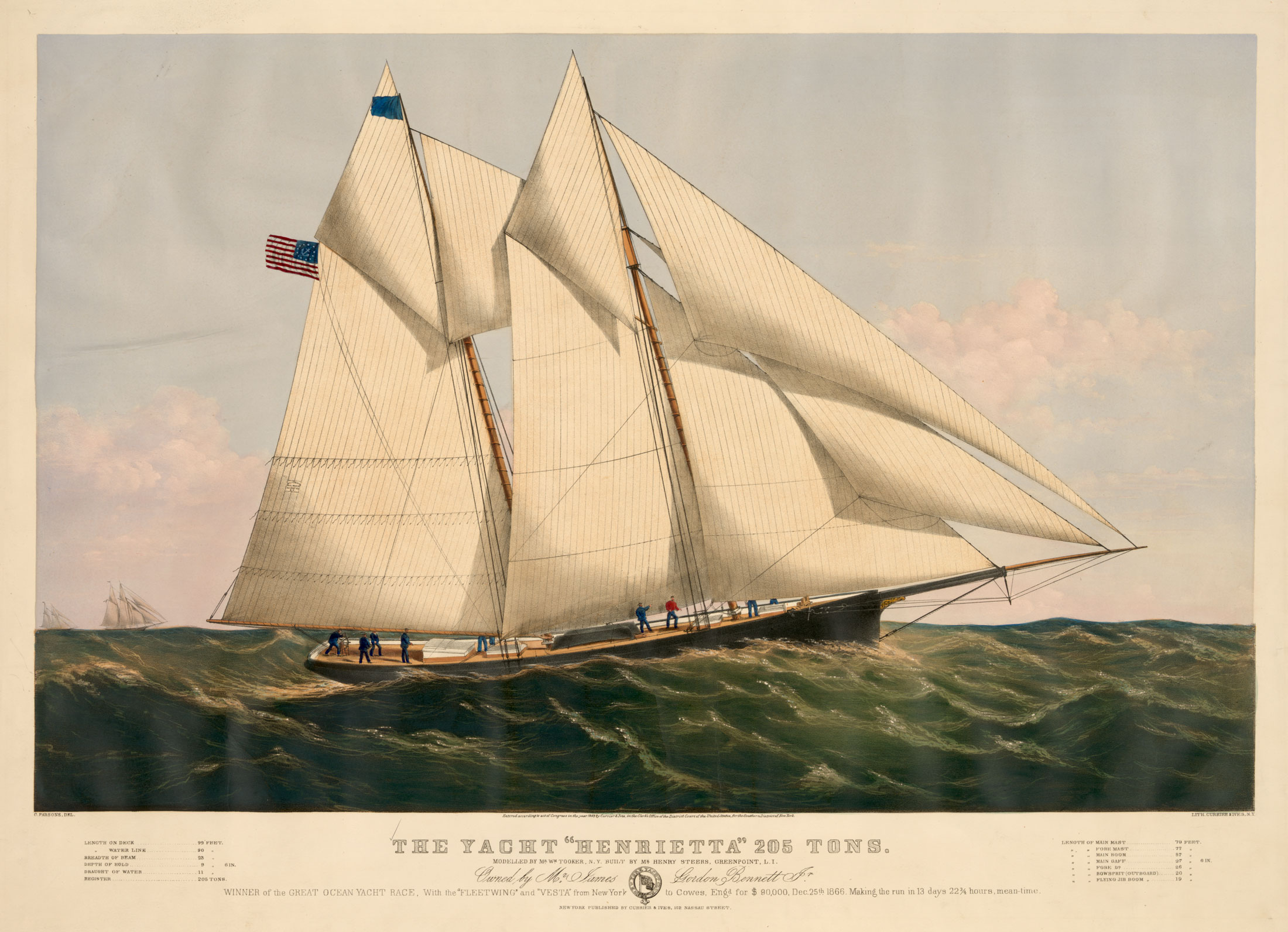 “The Yacht Henrietta” is a notable 19th-century nautical artwork by Charles Parsons, depicting the famous yacht built in 1861 by Henry Steers in Greenpoint, L.I.. The image, often featured in historical archives, showcases the vessel modeled by Mr. Wm. Booker, N.Y.. It highlights the ship’s design and construction.