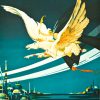 This is a fine art lithograph. It’s an original work of fine art which was produced at the prestigious S2 Atelier in New York City in 2000. It was inspired by a poster first created in 1924.These fine art lithographs are recreations of the original. Great care was taken to precisely re-create the artists original image. Most of the chromists hand draw directly onto specially prepared surfaces that are then transferred onto lithographic plates. Lithography involves creating hand drawn plates, one for each color, which are then ‘pulled’ through antique printing presses one color at a time. The resulting lithograph is in pure color, as opposed to the dot structure which occurs in the photographic process of modern printing. At the heart of the S2 Atelier are it’s two rare, French made Marinoni Voirin ‘editioning’ printing presses ‘ they both date back to the mid 19th century. These are the best fine art lithographs made in the industry today. You cannot find anything better than these. A thief falls in love with the Caliph of Bagdad’s daughter. The Caliph will give her hand to the suitor that brings back the rarest treasure after seven moons. The thief sets off on a magical journey while, unbeknownst to him, another suitor, the Prince of the Mongols, is not playing by the rules…