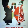 This is a very fun image showing Napoleon toasting with the Carpano King. This poster was printed on two separate pieces of paper due to its massive size using traditional stone lithography techniques. This poster is in very good condition, aside from a small paper repair on Napoleon%27s glass.