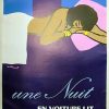 A poster advertising the sleeping cars for the SNCF line of trains. Beautiful French offset lithography in good condition.