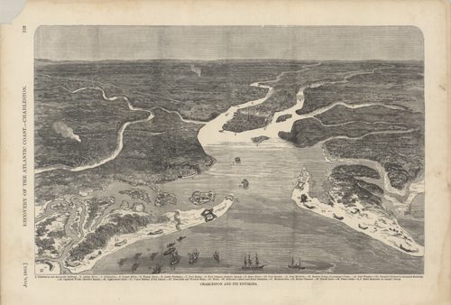 This is a depiction of the recover of Charleston and its defenses during the civil war. It depicts the forts and battlements in Charleston in 1863. Fort Sumter was a key defense in Charleston, as was Fort Wagner.