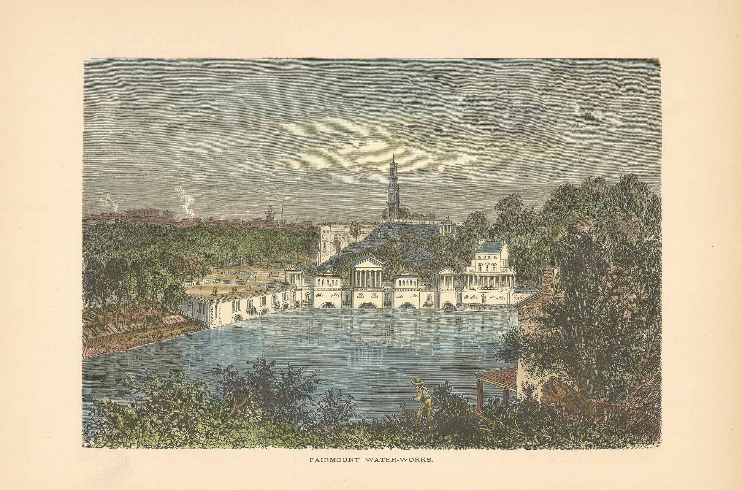 Picturesque America view of Fairmount Water-Works, Philadelphia, Pennsylvania, 1872