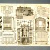 This beautiful 19th century print depicts plans and architectural details of theatrical buildings.