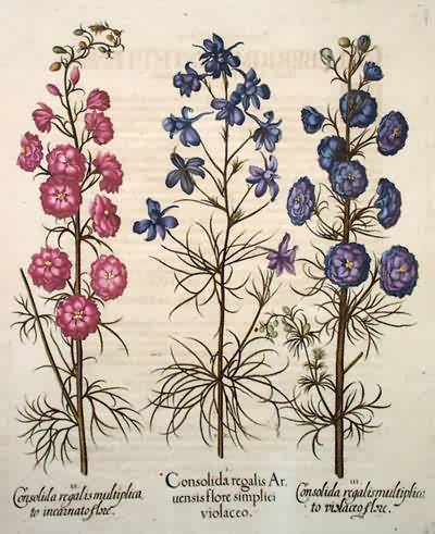 Blue-violet Wild Larkspur – Double-flowered Pink Larkspur – Double-flowered Blue Larkspur