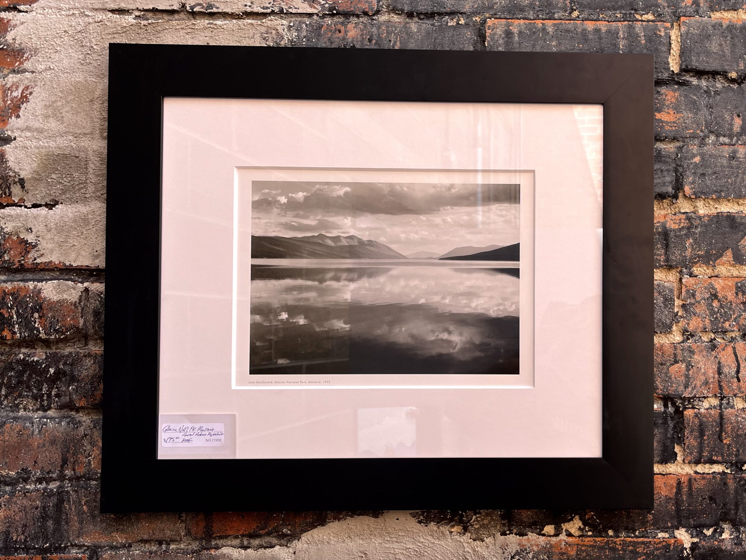 Framed reproduction of Ansel Adams 1942 Lake MacDonald, Glacier National Park, Montana. Ansel Easton Adams was an American landscape photographer and environmentalist known for his black-and-white images of the American West.
