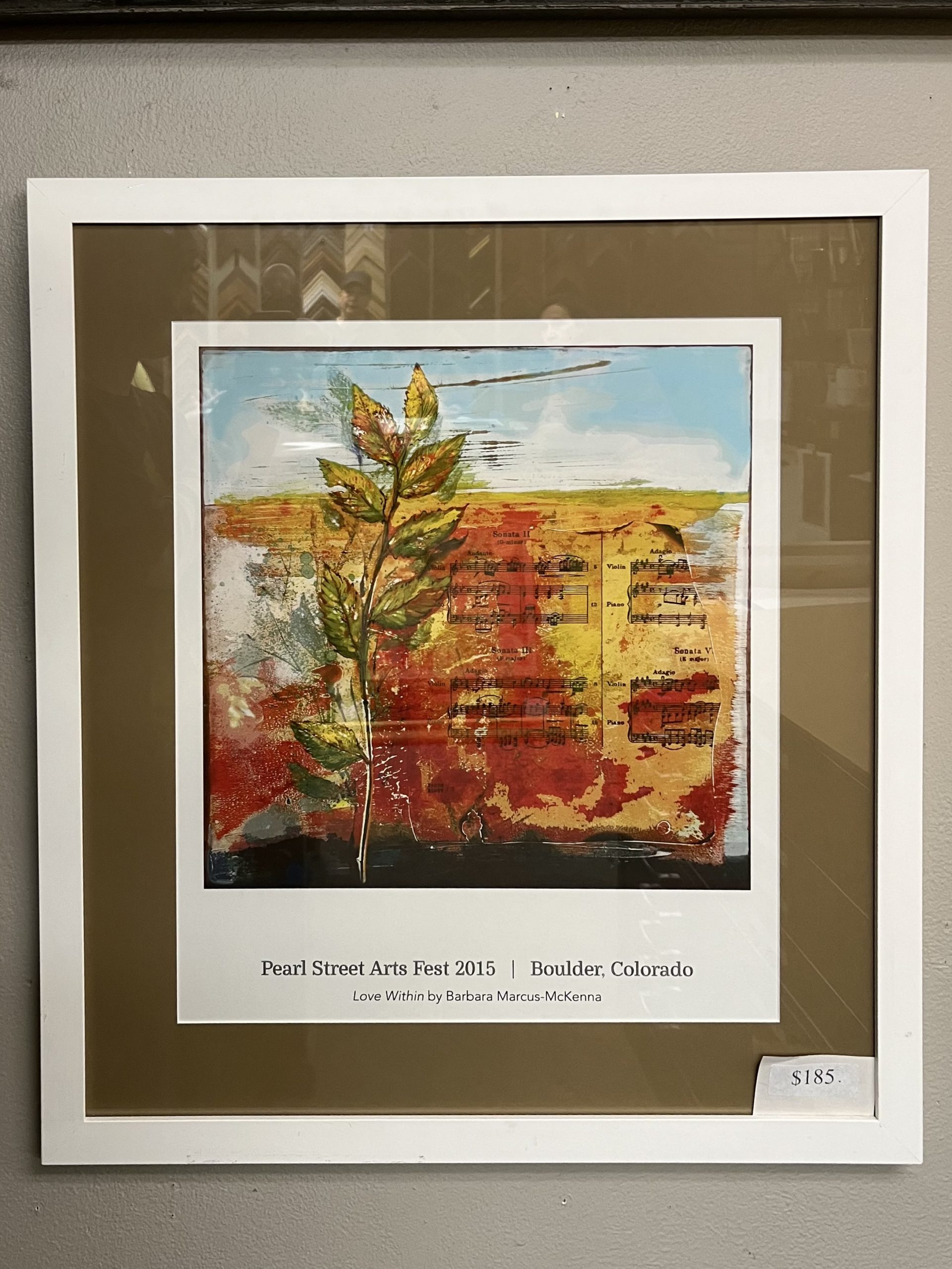 Framed Pearl Street Arts Fest Poster from 2015 featuring artwork Love Within by Barbara Marcus-McKenna.