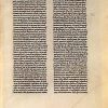 This is an original leaf from a French manuscript pocket Bible. Written in Latin gothic script, in brown ink on animal vellum. Rubricated chapter numbers, initials and marginalia are in red and blue. Extensive prick holes, which were used as a ruling guide, are evident along one side. The text consists of 55 lines of text in double columns (10 lines per inch). This originates from the Vienna Moralized Bible Workshop. And was also part of the ex-collection of Sir Sydney Cockrell. This leaf contains the text from Osee (Hosea) 2:2 – 8:1: Iudicate materem?” (Judge your mother?Hear ye this, O priests, and hearken, O ye house of Israel, and give ear, O house of the King: for there is a judgment against you?).A “portable” Bible, such as the one that this leaf is from, during the period of the Crusades, would have been used in the abstract study of theology or the preaching of the Gospel around the medieval countryside. This leaf is encased within a double-sided mat within a sealed plastic envelope.