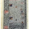 Original leaf from an important printed & hand-illuminated Book of Hours. Ruled Latin text with side panel text in French. Printed in red and black on animal vellum. Initials, paragraph markers & endings illuminated by hand in gold, on grounds of blue and/ or magenta. Noted for its decorative borders – the paneled surrounds are historiated or inhabited. Printed by Thielma Kerver. Paris, Use of Rome, c. 1506.Ex collection: Baron Alexander Peckover von WisbechThe two-line B” begins Daniel 3:84-88: “Benedicite?” (O ye preists of the Lord, bless the Lord: praise and exalt him above all forever?). The two line “L” begins Psalm 150:1-3: “Laudate?” (Have mercy on me, O God, according to thy great mercy?)”