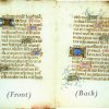 A stunning French psalter in Latin in Gothic script with burnished gold initials and elaborate penwork in blue and red. A beatiful archival mat has been added with windows cut front and back for easy viewing of both sides.