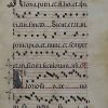 This is an original leaf from a 15th century Gregorian chant. This musical sheet was executed by hand in manuscript calligraphy on animal parchment. The music and text (six lines written in rounded gothic script) are written in black ink, on a five-line-stave, with headings and rubrics in red. This leaf is related to a series of choirbooks attributed to the Master of the Cypresses (Pedro da Toledo?) who illuminated 20 Choirbooks now in the Cathedral of Seville. One illuminated initial extends the length the five-line stave and is in burnished gold with an interior motif on blue ground, resting on an outer rectangular red ground with a delicate floral motif; then extending into the margin in an elegant rinceaux-style border of vines adorned with gold bezants! Two calligraphic initials heightened with yellow. The calligraphic G” begins the Gloria ” Gloria patri et filio et spiritui?””