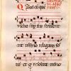 Original leaf from a rare miniature manuscript Gradual. Four lines in red ink with text and musical notation in black ink (on a four-line stave), on animal vellum. Written in rotunda (rounded gothic) script in black and red. Italy, c. 1456-1500. The parent manuscript was written for Franciscan use, apparently after Pope Calixtus ordered the universal celebration of the “Feast of the Transfiguration of Christ” in commemoration of the victory of the Balkan nations over an Ottoman army at Belgrade, 6 August 1456. It may have belonged to the Tinto family of Venice in the 16th century. Graduals contain the musical chants for the proper of the Mass: introits, graduals, tracts, alleluia, offertory and communion verses, and sequences for special feasts. They may also include chants for the ordinary of the Mass: Kyrie, Gloria, Sanctus, Agnus Dei and for the intorductory ‘asperges’ rite.