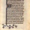 This is an original leaf from a manuscript Prayer Book. The text consists of 16 lines of text, ruled in red, written in Latin in gothic textura script on animal vellum. There is one illuminated two-line initial in red with internal floral motif surrounded by burnished gold and extending along the margins with trailing flowers, top and bottom, in red, blue and gold (distinctive 14th century style).The large illuminated initial G” begins a prayer: “Gratias ago tibi?” (I give thee thanks, Lord Jesus Christ?).Prayer Books are collections of prayers for private devotional use. Throughout the Middle Ages they supplemented the Psalter and Book of Hours.