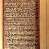 Original leaf from an illuminated manuscript of the Jeleel el Khomat. Written on thin native handmade glazed paper. Very fine calligraphy in red and black ink – 11 lines of text with subscript entirely in red, with an illumined floral border. Margins ruled in orange, gold and blue. The interlinear divisions are in burnished gold. This Leaf is from a manuscript formerly in the collection of Henry White of Queen’s Gate and sold by Sotheby’s of London in April 1902.