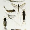 This chromolithograph was created by L.H. Joutel in 1900. Mayflies are shown in different stages of their life-cycles.