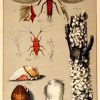 This chromolithograph was created by the U.S. Dept. of Agriculture in 1886. The Orange Icerya is shown in the various stages of its life-cycle.